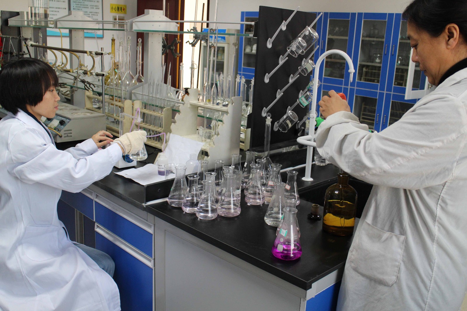 檢測(cè)中心王世平、賈麗萍進(jìn)行培養(yǎng)皿的清洗工作