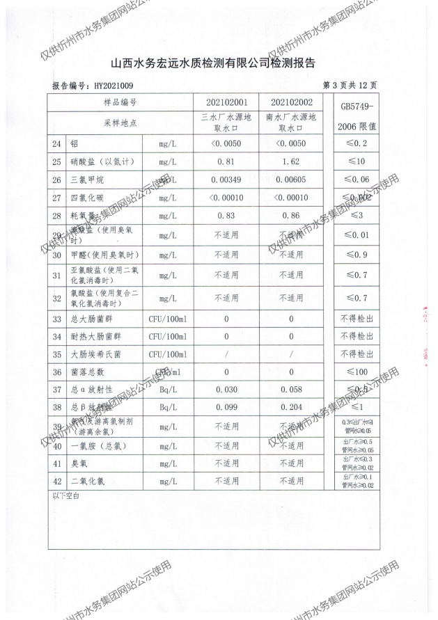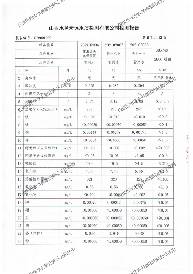忻州城區(qū)公共供水水源水、出廠水、管網(wǎng)水、管網(wǎng)末梢水2021年2月份水質(zhì)信息公示