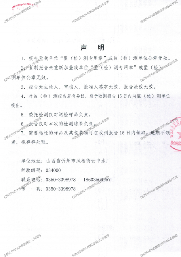 忻州城區(qū)公共供水水源水、出廠水、管網(wǎng)水、管網(wǎng)末梢水2024年4月份水質信息公示